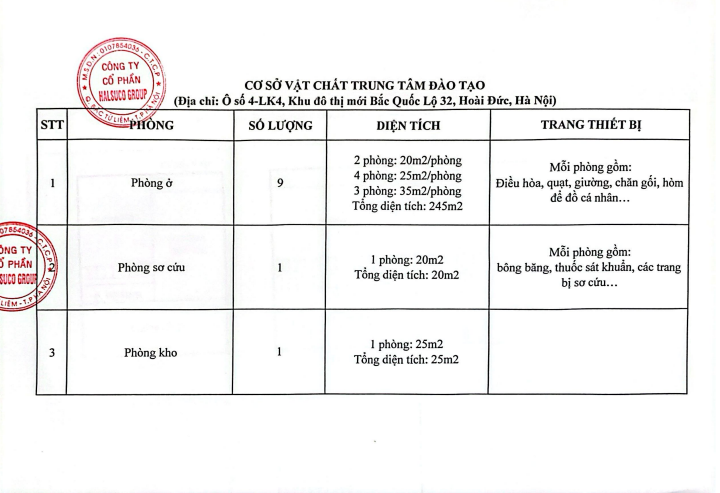 – Cơ sở : Ô số 4-LK 4, Khu đô thị mới Bắc Quốc lộ 32, xã Hoài Đức, TP.Hà Nội.