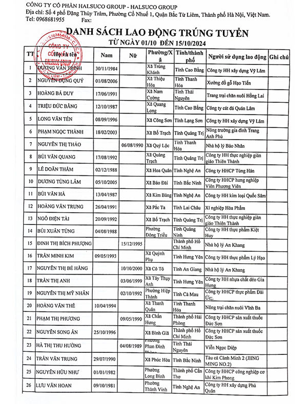 Danh Sách Lao Động Trúng Tuyển Danh Sách Lao Động Trúng Tuyển 01/10 đến 15/10/2024 Chúc mừng các bạn thực tập sinh hưởng lương Balan trúng tuyển Danh Sách Lao Động Trúng Tuyển 31/10 đến 10/11/2024 Danh Sách Lao Động Trúng Tuyển 01/12 đến 12/12/2023 13/12/2025 Danh Sách Lao Động Trúng Tuyển 01/11 đến 30/11/2025 01/12/2025 Danh Sách Lao Động Trúng Tuyển 1/10 đến 31/10/2025 01/11/2025 Danh Sách Lao Động Trúng Tuyển 25/10 đến 30/10/2024 31/10/2025 Danh Sách Lao Động Trúng Tuyển 15/10 đến 26/10/2024 28/10/2025 Danh Sách Lao Động Trúng Tuyển 1/09 đến 30/09/2025 02/10/2025