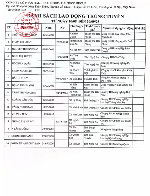 Danh Sách Lao Động Trúng Tuyển Danh Sách Lao Động Trúng Tuyển 10/08 đến 20/09/2025 Danh Sách Lao Động Trúng Tuyển 08/02 đến 15/02/2025 Danh Sách Lao Động Trúng Tuyển 01/08 đến 30/08/2025 Danh Sách Lao Động Trúng Tuyển 1/09 đến 30/09/2025 Danh Sách Lao Động Trúng Tuyển 01/12 đến 12/12/2023 13/12/2025 Danh Sách Lao Động Trúng Tuyển 01/11 đến 30/11/2025 01/12/2025 Danh Sách Lao Động Trúng Tuyển 1/10 đến 31/10/2025 01/11/2025 Danh Sách Lao Động Trúng Tuyển 25/10 đến 30/10/2024 31/10/2025 Danh Sách Lao Động Trúng Tuyển 15/10 đến 26/10/2024 28/10/2025 Danh Sách Lao Động Trúng Tuyển 1/09 đến 30/09/2025 02/10/2025