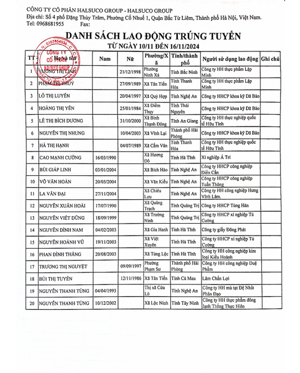 Danh Sách Lao Động Trúng Tuyển Danh Sách Lao Động Trúng Tuyển 10/11 đến 16/11/2024 Danh Sách Lao Động Trúng Tuyển 31/10 đến 10/11/2024 Danh Sách Lao Động Trúng Tuyển 01/11/2024 đến 30/10/2024 Danh Sách Lao Động Trúng Tuyển 01/12 đến 12/12/2023 13/12/2025 Danh Sách Lao Động Trúng Tuyển 01/11 đến 30/11/2025 01/12/2025 Danh Sách Lao Động Trúng Tuyển 1/10 đến 31/10/2025 01/11/2025 Danh Sách Lao Động Trúng Tuyển 25/10 đến 30/10/2024 31/10/2025 Danh Sách Lao Động Trúng Tuyển 15/10 đến 26/10/2024 28/10/2025 Danh Sách Lao Động Trúng Tuyển 1/09 đến 30/09/2025 02/10/2025