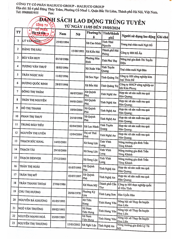 Danh Sách Lao Động Trúng Tuyển Danh Sách Lao Động Trúng Tuyển 11/05 đến 19/05/2024 Danh Sách Lao Động Trúng Tuyển 12/04 đến 29/04/2025 Danh Sách Lao Động Trúng Tuyển 29/04 đến 24/05/2025 Danh Sách Lao Động Trúng Tuyển 01/12 đến 12/12/2023 13/12/2025 Danh Sách Lao Động Trúng Tuyển 01/11 đến 30/11/2025 01/12/2025 Danh Sách Lao Động Trúng Tuyển 1/10 đến 31/10/2025 01/11/2025 Danh Sách Lao Động Trúng Tuyển 25/10 đến 30/10/2024 31/10/2025 Danh Sách Lao Động Trúng Tuyển 15/10 đến 26/10/2024 28/10/2025 Danh Sách Lao Động Trúng Tuyển 1/09 đến 30/09/2025 02/10/2025