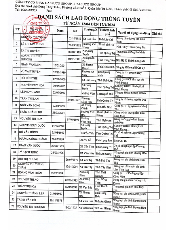 Danh Sách Lao Động Trúng Tuyển Danh Sách Lao Động Trúng Tuyển 12/04 đến 17/04/2024 Danh Sách Lao Động Trúng Tuyển 07/04 đến 14/04/2024 Danh Sách Lao Động Trúng Tuyển 12/04 đến 29/04/2025 Danh Sách Lao Động Trúng Tuyển 01/12 đến 12/12/2023 13/12/2025 Danh Sách Lao Động Trúng Tuyển 01/11 đến 30/11/2025 01/12/2025 Danh Sách Lao Động Trúng Tuyển 1/10 đến 31/10/2025 01/11/2025 Danh Sách Lao Động Trúng Tuyển 25/10 đến 30/10/2024 31/10/2025 Danh Sách Lao Động Trúng Tuyển 15/10 đến 26/10/2024 28/10/2025 Danh Sách Lao Động Trúng Tuyển 1/09 đến 30/09/2025 02/10/2025