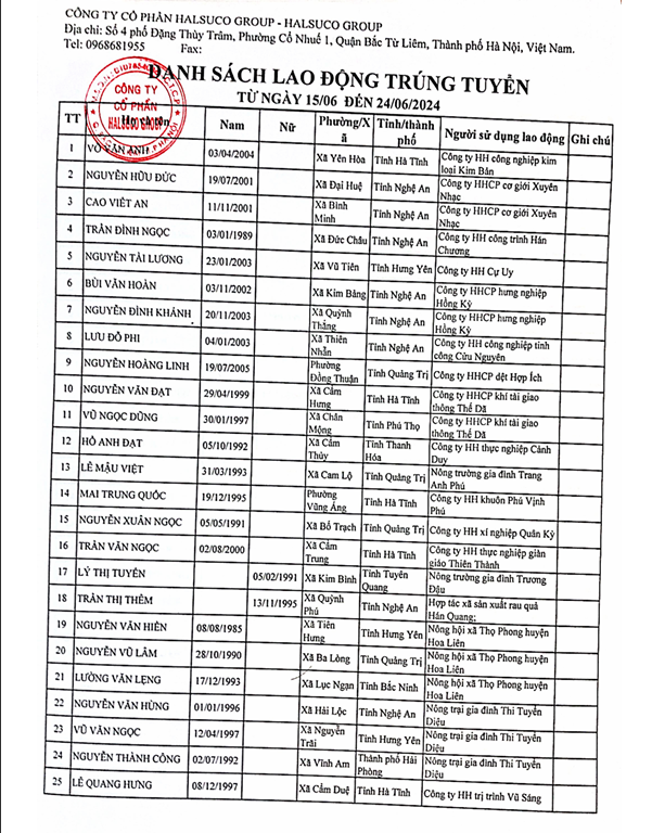Danh Sách Lao Động Trúng Tuyển Danh Sách Lao Động Trúng Tuyển 15/06 đến 24/06/2024 Danh Sách Lao Động Trúng Tuyển 02/06 đến 15/06/2024 Danh Sách Lao Động Trúng Tuyển 14/07 đến 25/07/2024 Danh Sách Lao Động Trúng Tuyển 01/12 đến 12/12/2023 13/12/2025 Danh Sách Lao Động Trúng Tuyển 01/11 đến 30/11/2025 01/12/2025 Danh Sách Lao Động Trúng Tuyển 1/10 đến 31/10/2025 01/11/2025 Danh Sách Lao Động Trúng Tuyển 25/10 đến 30/10/2024 31/10/2025 Danh Sách Lao Động Trúng Tuyển 15/10 đến 26/10/2024 28/10/2025 Danh Sách Lao Động Trúng Tuyển 1/09 đến 30/09/2025 02/10/2025