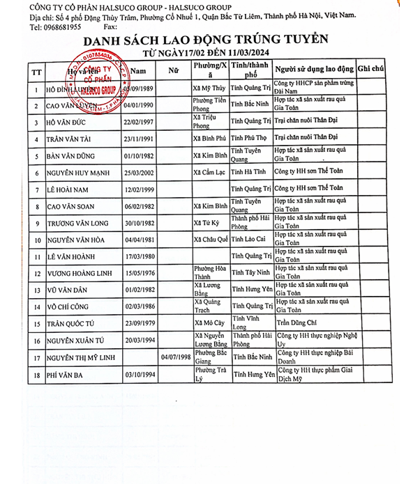 Danh Sách Lao Động Trúng Tuyển Danh Sách Lao Động Trúng Tuyển 17/02 đến 11/03/2024 Danh Sách Lao Động Trúng Tuyển 15/02 đến 02/03/2025 Danh Sách Lao Động Trúng Tuyển 01/02 đến 28/02/2025 Danh Sách Lao Động Trúng Tuyển 01/12 đến 12/12/2023 13/12/2025 Danh Sách Lao Động Trúng Tuyển 01/11 đến 30/11/2025 01/12/2025 Danh Sách Lao Động Trúng Tuyển 1/10 đến 31/10/2025 01/11/2025 Danh Sách Lao Động Trúng Tuyển 25/10 đến 30/10/2024 31/10/2025 Danh Sách Lao Động Trúng Tuyển 15/10 đến 26/10/2024 28/10/2025 Danh Sách Lao Động Trúng Tuyển 1/09 đến 30/09/2025 02/10/2025