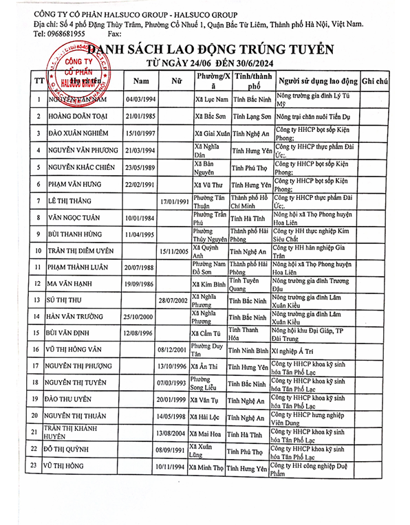 Danh Sách Lao Động Trúng Tuyển Danh Sách Lao Động Trúng Tuyển 24/06 đến 30/06/2024 Danh Sách Lao Động Trúng Tuyển 01/06 đến 30/06/2025 Danh Sách Lao Động Trúng Tuyển 14/06 đến 05/07/2025 Danh Sách Lao Động Trúng Tuyển 01/12 đến 12/12/2023 13/12/2025 Danh Sách Lao Động Trúng Tuyển 01/11 đến 30/11/2025 01/12/2025 Danh Sách Lao Động Trúng Tuyển 1/10 đến 31/10/2025 01/11/2025 Danh Sách Lao Động Trúng Tuyển 25/10 đến 30/10/2024 31/10/2025 Danh Sách Lao Động Trúng Tuyển 15/10 đến 26/10/2024 28/10/2025 Danh Sách Lao Động Trúng Tuyển 1/09 đến 30/09/2025 02/10/2025