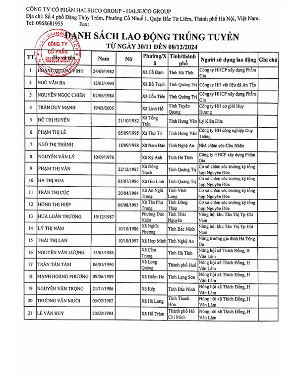 Danh Sách Lao Động Trúng Tuyển Danh Sách Lao Động Trúng Tuyển 30/11 đến 08/12/2024 Danh Sách Lao Động Trúng Tuyển 16/11 đến 30/11/2024 Danh Sách Lao Động Trúng Tuyển 31/11 đến 06/12/2024 Danh Sách Lao Động Trúng Tuyển 01/12 đến 12/12/2023 13/12/2025 Danh Sách Lao Động Trúng Tuyển 01/11 đến 30/11/2025 01/12/2025 Danh Sách Lao Động Trúng Tuyển 1/10 đến 31/10/2025 01/11/2025 Danh Sách Lao Động Trúng Tuyển 25/10 đến 30/10/2024 31/10/2025 Danh Sách Lao Động Trúng Tuyển 15/10 đến 26/10/2024 28/10/2025 Danh Sách Lao Động Trúng Tuyển 1/09 đến 30/09/2025 02/10/2025