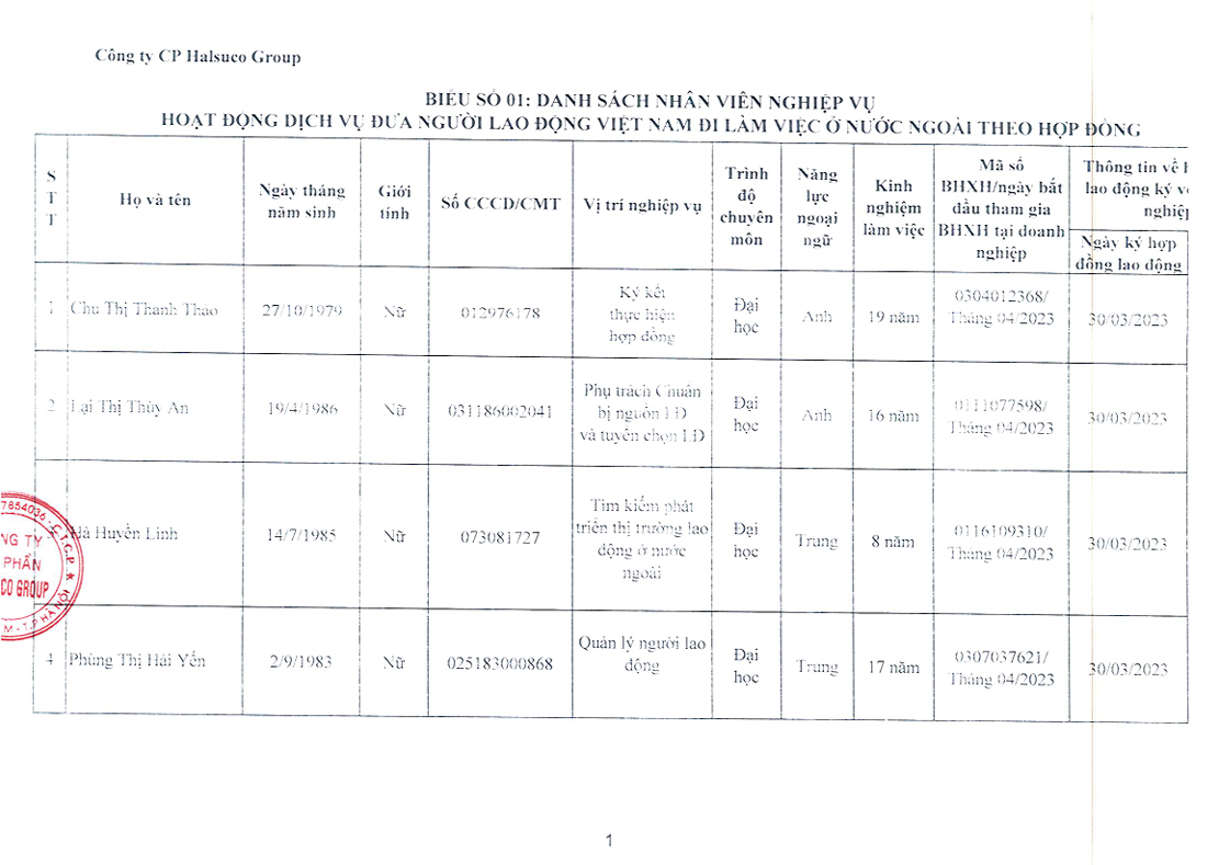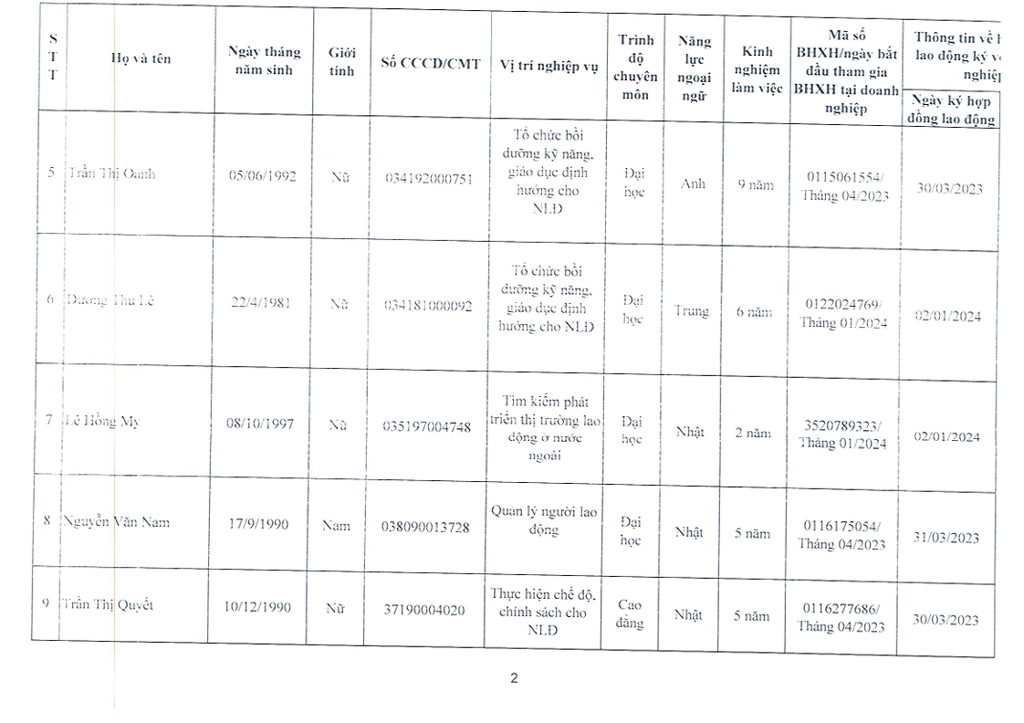DS nhân viên nghiệp vụ